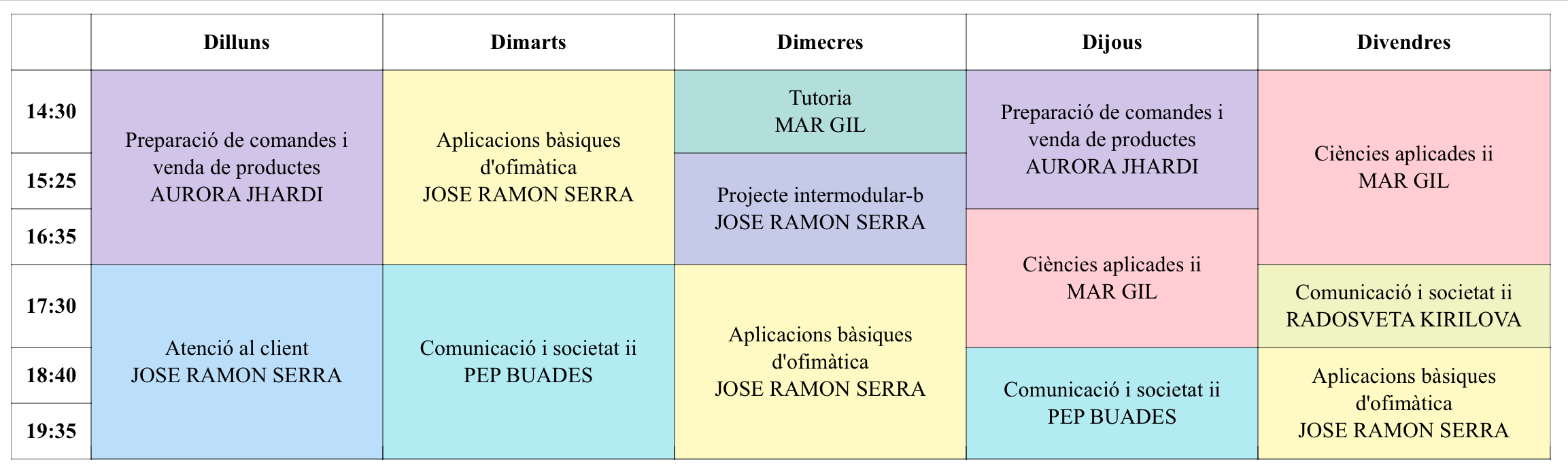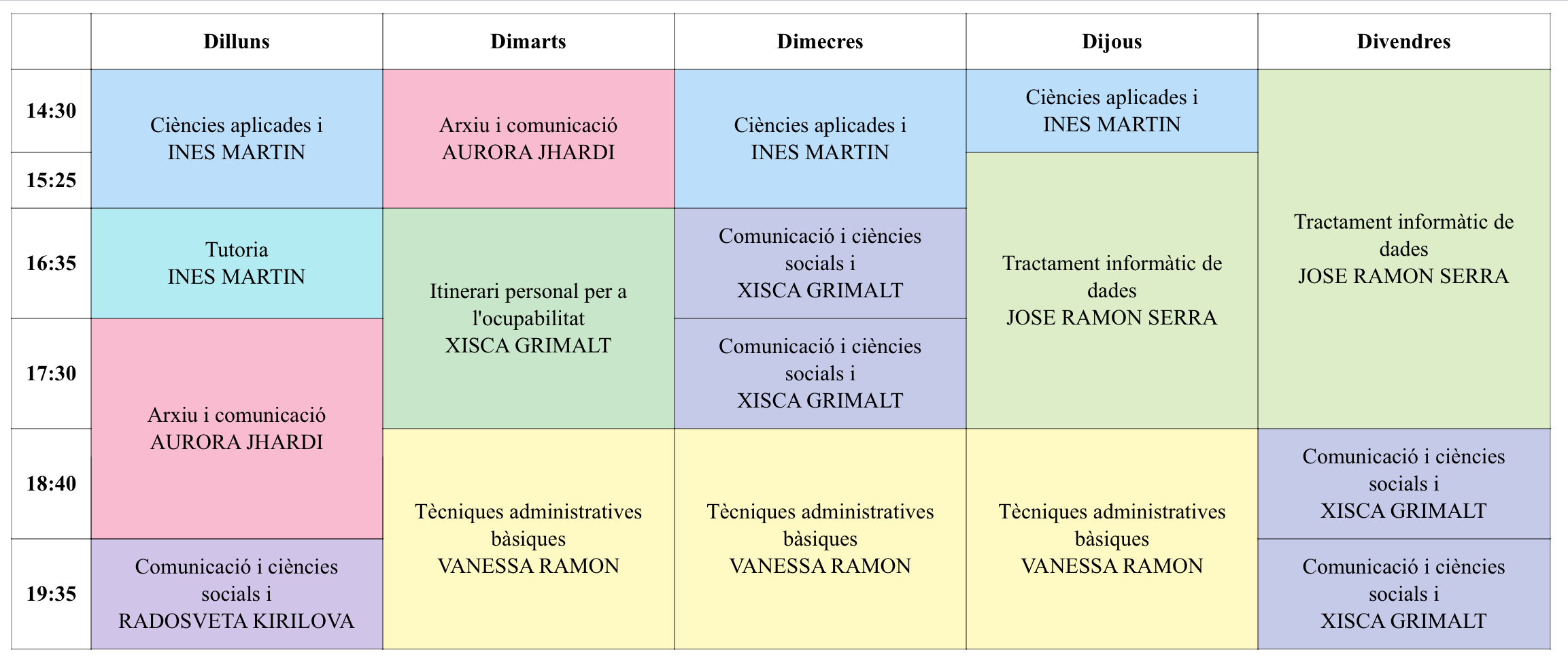 Aquí podeu consultar els horaris del curs 2025/2026.